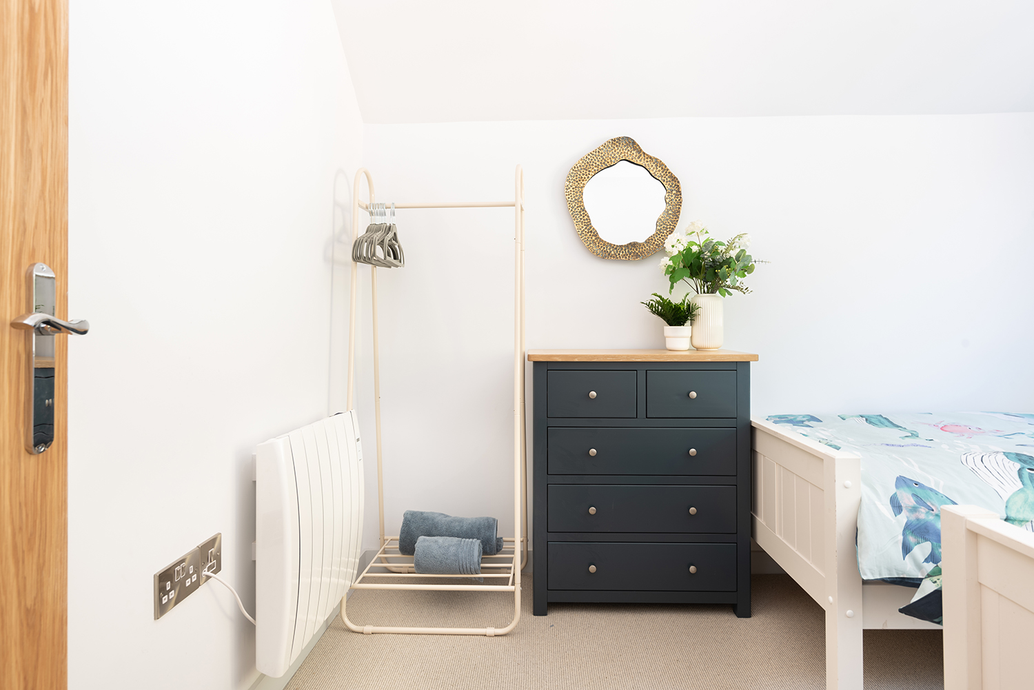 A second twin bedroom provides flexible accommodation for family or guests, complemented by a stylish shower room and additional WC, ensuring comfort and practicality in equal measure.