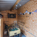 To the rear, a more sheltered patio area offers a sociable dining area - a wonderful sun trap, ideal for relaxed evenings and informal entertaining. An additional outhouse, complete with games, adds a playful and practical touch for all seasons.