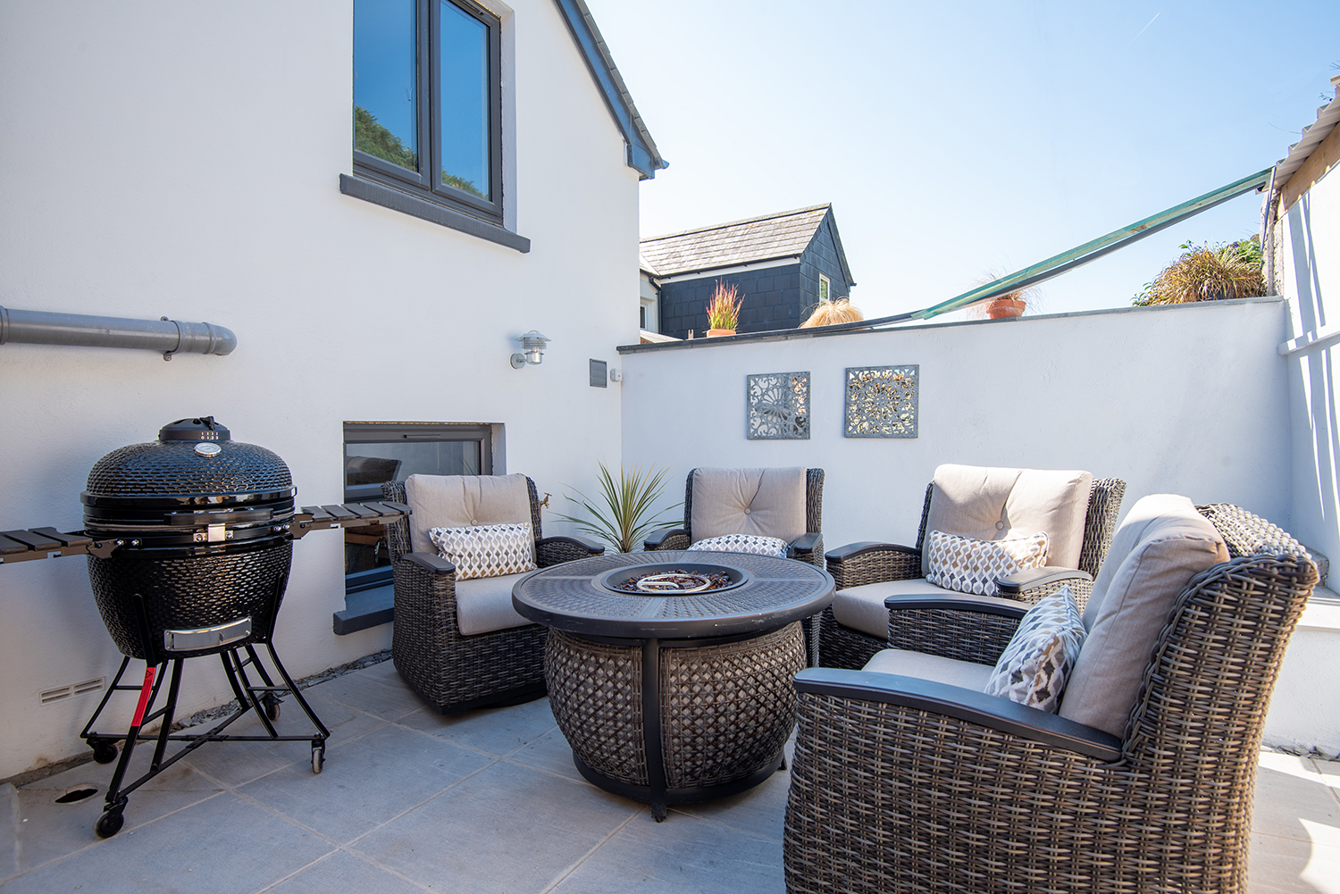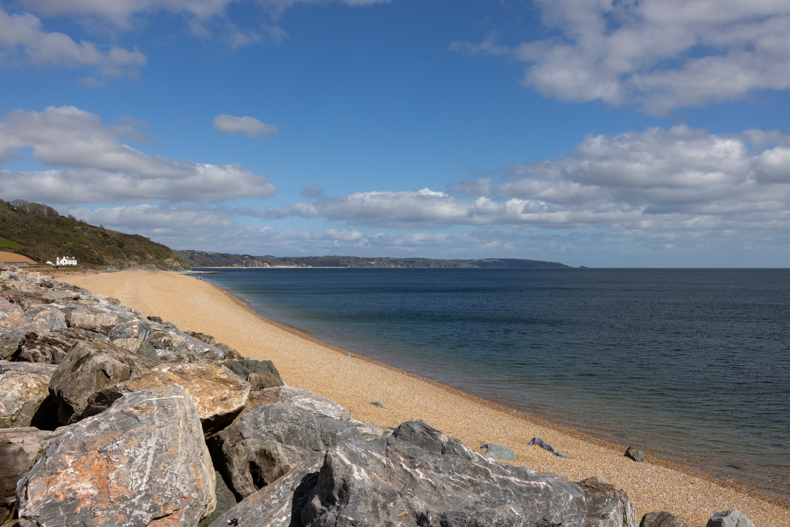 To the front, a small gravelled seating area provides a front-row view of village life and the ever-changing sea beyond - perfect for morning coffee or a sundowner as the light fades across Start Bay.
