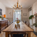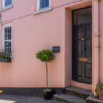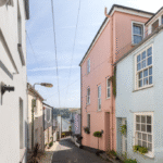 From the street, the house makes an immediate impression - one of Dartmouth’s most handsome Georgian façades, painted in a soft muted pink, flanked by two elegant bay trees that mark the width of the property with a charming window box adding a splash of seasonal colour. The front door is a handsome dark grey with a classic brass knocker and handle, setting the tone for the elegance within. Unusually for a property so close to the centre of Dartmouth, it also benefits from its own private parking space on nearby Jawbones Hill.