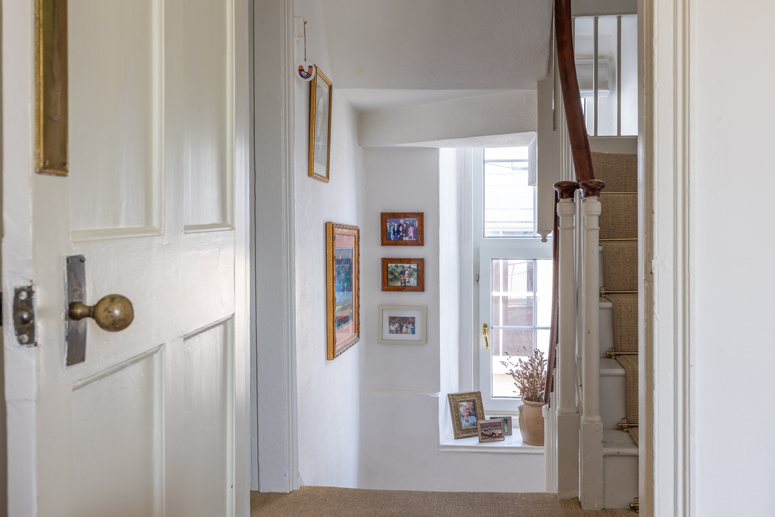 The staircase is a particularly lovely feature - original and elegantly preserved, with windows on the half landings that fill the stairwell with light. The stairs are painted and finished with sisal runners and brass carpet rods, adding to the home’s period charm.