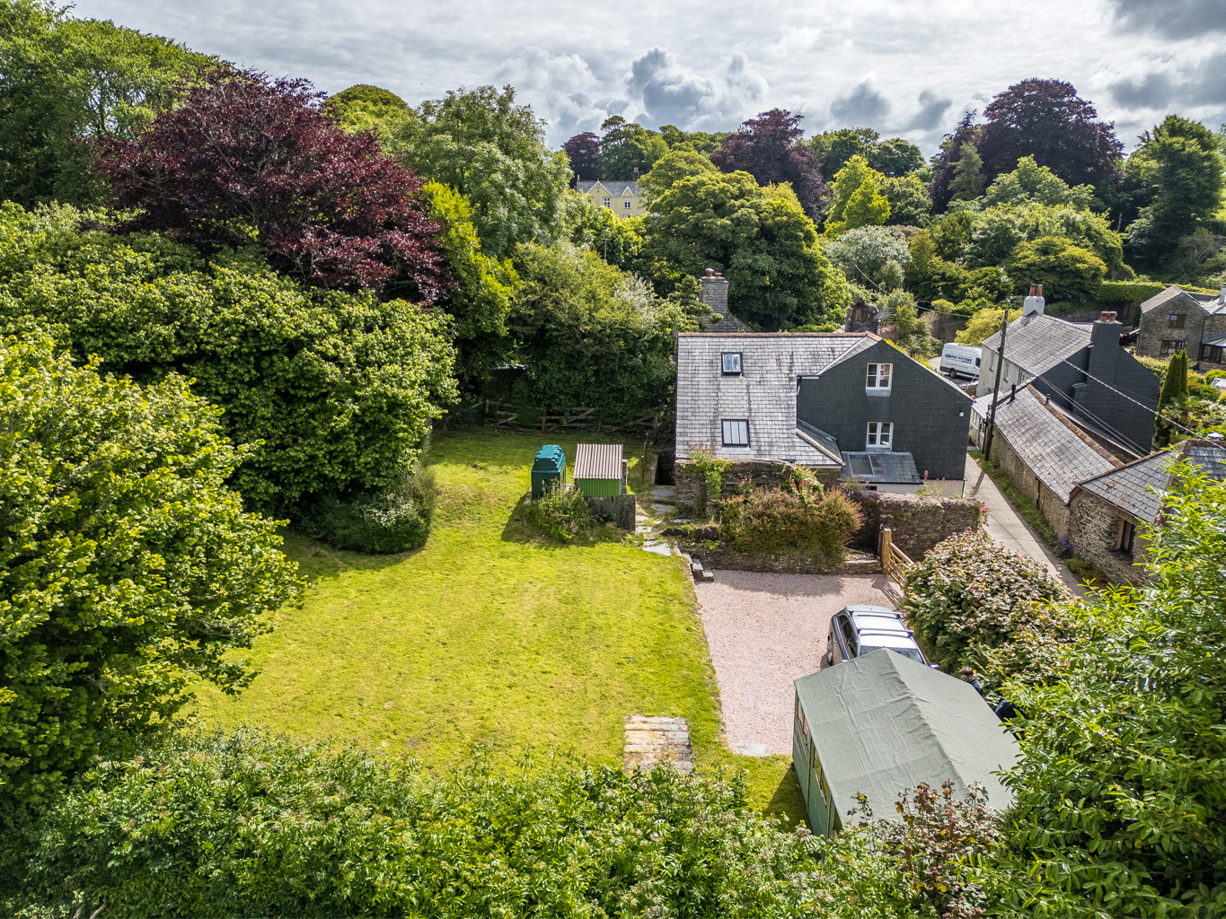 The garden is south and west facing and a generous size. Currently laid to lawn but offers enough space to have a vegetable patch and herbaceous borders. There would still be plenty of space for a lawned area. There is a large garden shed and an old privy (dis-used). The large double gates and gravelled parking area will comfortably allow for two cars.