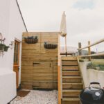 At the back of the property, this is a new decked area accessed from the kitchen, providing a pretty spot to sit and enjoy a coffee or wine, whiling away your hours watching the sea.