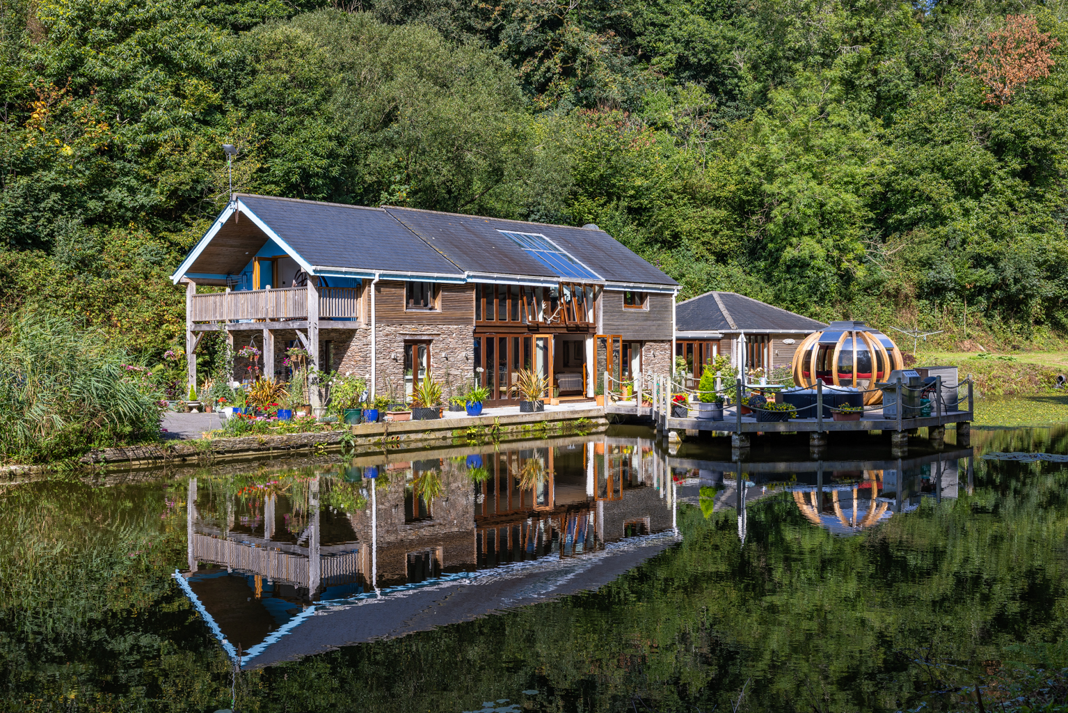 woodland, lakes, and paddocks and boasts a prime lakeside location. Lodge on the Lake is an exceptional residence situated in its own valley, surrounded by lush woodlands and the picturesque rolling countryside of South Hams.